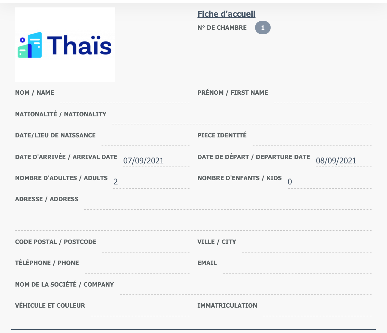 Cette fiche vous permet de fournir un document équivalent à la fiche police à votre client. Cette fiche peut être imprimée, et/ou complétée depuis le logiciel directement.